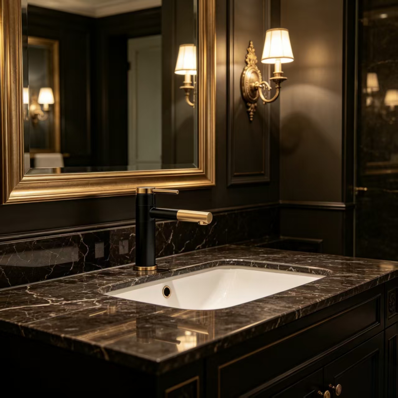 The design works with pretty much any style – modern, industrial, wabi-sabi, light luxury. Matte black plus brushed gold gives it a premium look without being flashy. And if that combo doesn’t fit your project, we’ve got Chrome, Matt Black, Gunmetal Grey, and full Brushed Gold as well.