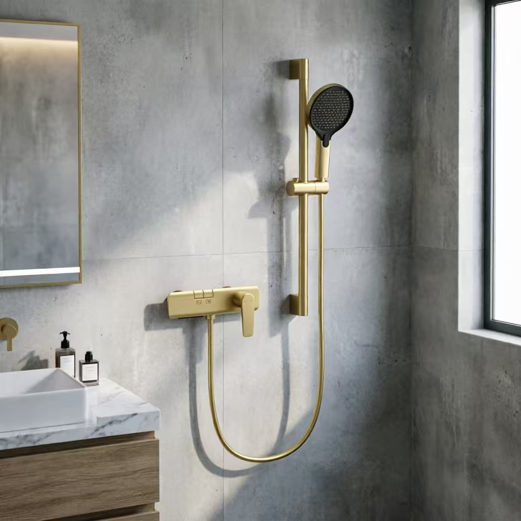 With an overall brushed gold design, the shower head is simple and elegant, with a light luxury and high-grade texture, which can perfectly match various bathroom decoration styles, whether it is a commercial space, a residential project or a high-end hotel. It is equipped with a 1.5-meter PVC shower hose that is flexible, fold-resistant and not easy to knot, and the 304 curved feet and decorative cups make installation convenient and quick, saving installation time and labor costs for engineering projects and retail installation. SSWW adheres to the principle of quality first, providing stable supply, competitive prices and perfect after-sales service for B-end customers, helping you gain more advantages in the market competition.
