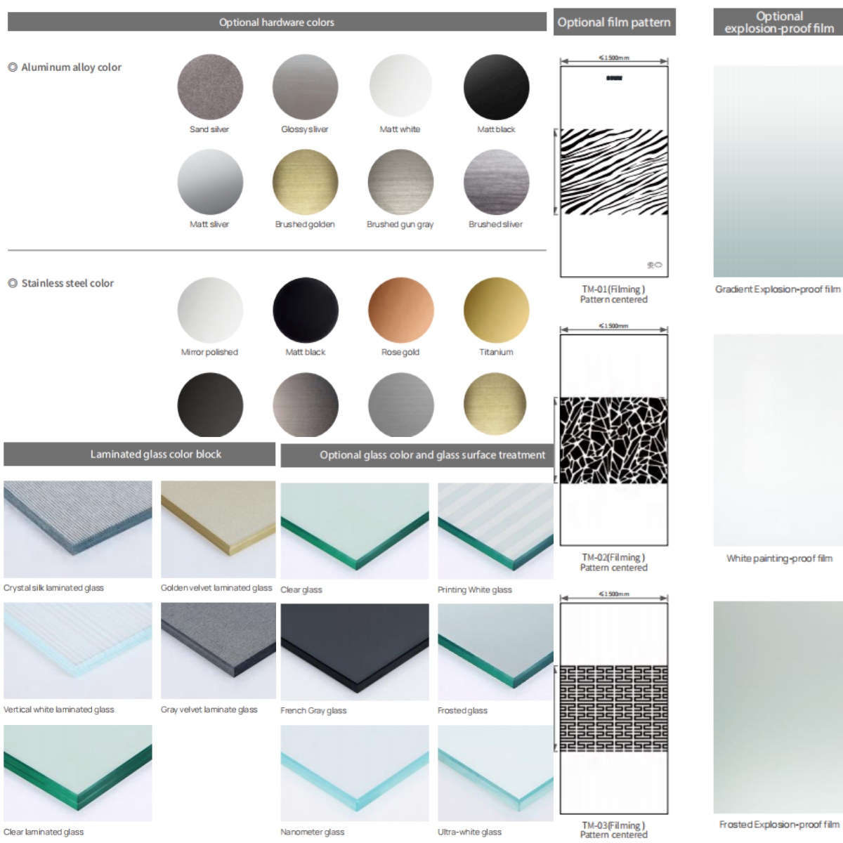 Glass safety technology has also evolved. While tempered glass remains the industry standard — with requirements for fragmentation into small, relatively harmless particles upon breakage — leading manufacturers now add protective films to further enhance safety. These films hold glass fragments in place even when the glass is shattered, preventing dangerous shards from scattering. The result is a “dual-protection” system that significantly reduces injury risks.