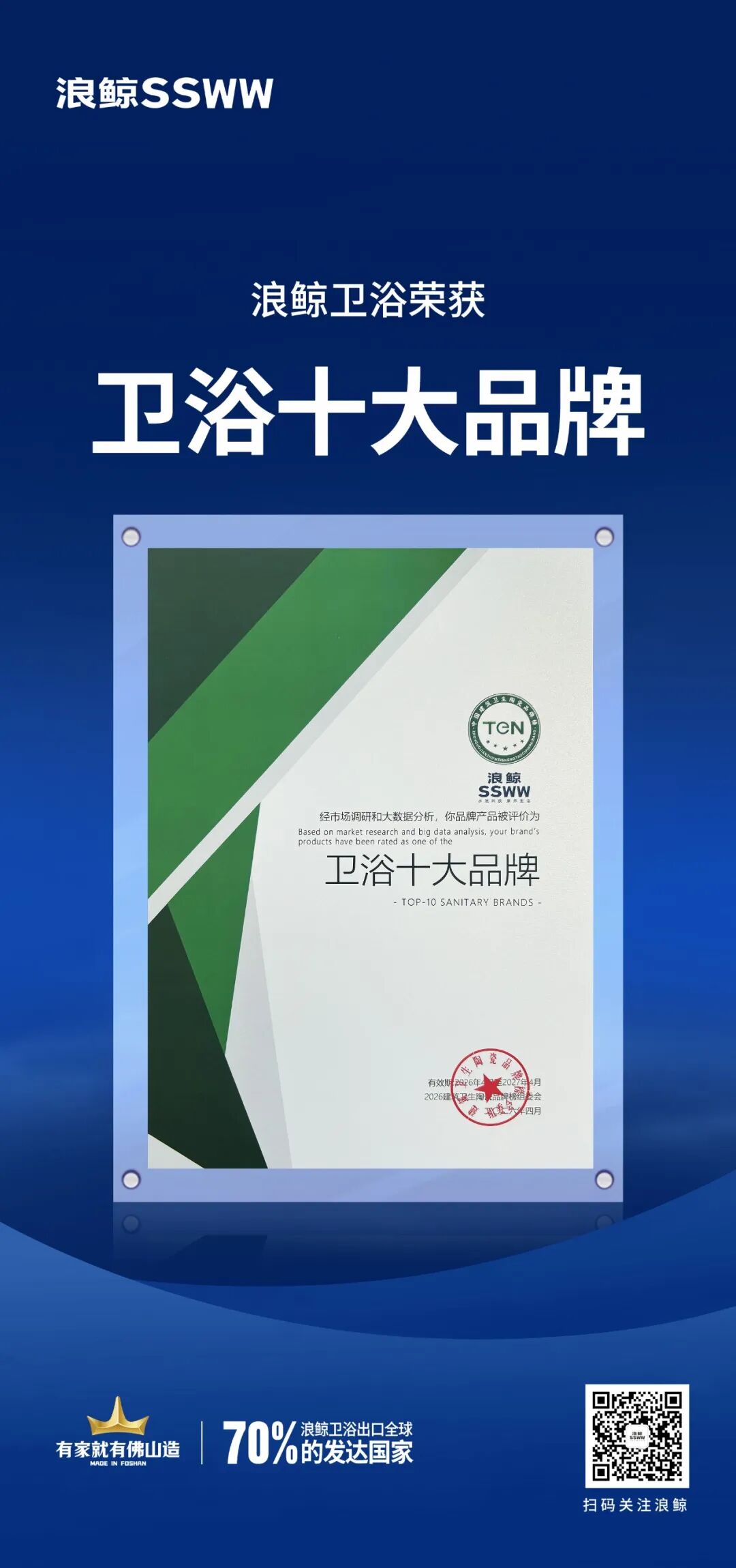 As a professional bathroom manufacturer and exporter with 32 years of experience, SSWW has built its reputation on R&D innovation and strict quality control. At the “15th China Building Sanitary Ware Brand Supply & Cooperation Summit” held on April 16, 2026, organized by the China Building Materials Circulation Association, SSWW was once again awarded the title of “Top 10 Bathroom Brands”. This honor not only affirms SSWW’s brand strength but also sends a strong signal of reliability to global B2B customers.