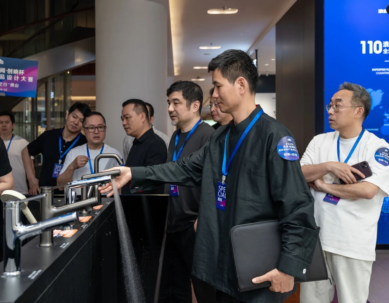 At SSWW’s showroom, the jury toured the full product range including smart toilets, custom bathroom vanities, faucets & showers, and shower enclosures. They experienced the new-generation bathroom space equipped with “Water Wash Tech 3.0”. Key innovations such as micro-nano bubble skincare technology and zero-water-pressure silent whale-power flushing technology were closely examined. The jury acknowledged SSWW’s commitment to improving user experience through technological breakthroughs and human-centric design. They showed strong interest in SSWW’s progress in process precision, health technology, and spatial adaptability.
