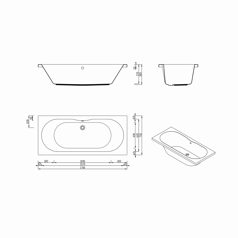 Bathtub Size:1800 x 800 x 440 mm/1700 x 750 x 440 mm