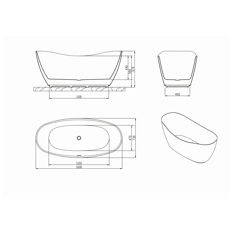 Common Bathtub Size:1600 x 730 x 670 mm